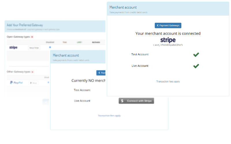 One click to the Stripe admin area, where you login, agree permissions and then you are “round-tripped” back in the DotGO admin area.